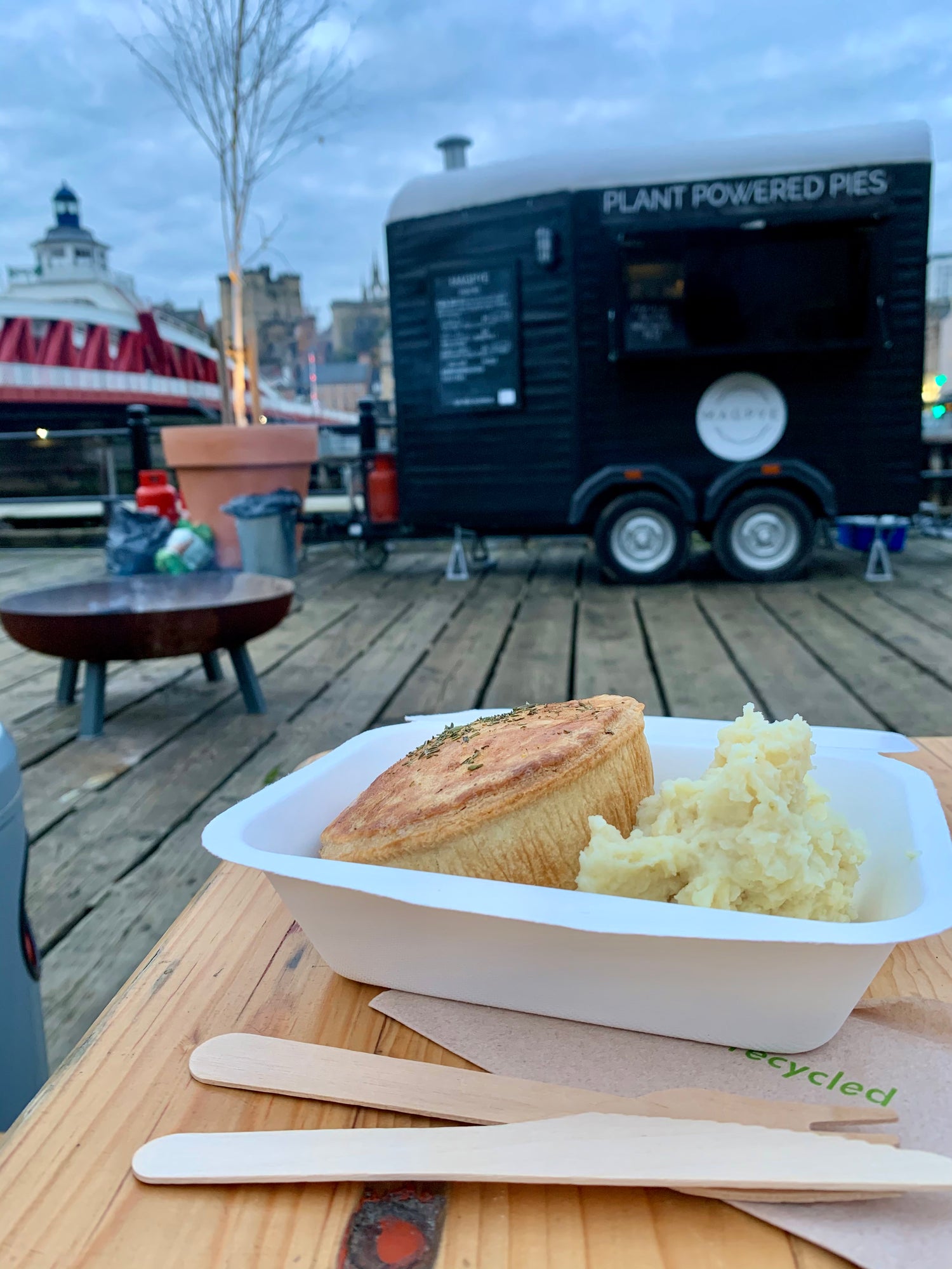 Our first pies were served from a converted trailer on Newcastle’s Quayside, with the Tyne in the background and a battered old oven behind us.