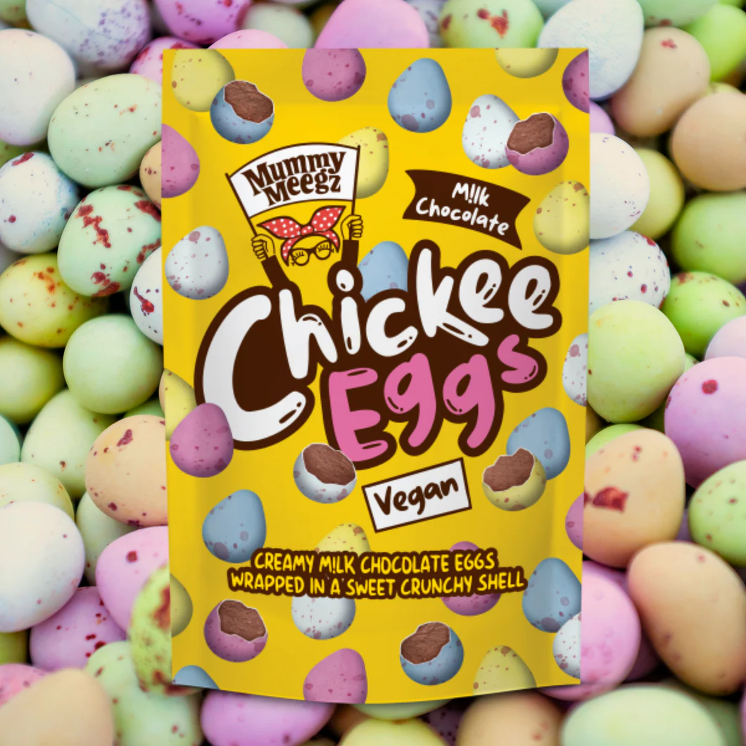 Mummy Meegz Chickee Eggs (80g) are a vegan take on a British classic. Each one has a crisp sugar shell wrapped around smooth chocolate made with a minimum of 35% cocoa solids, giving a proper chocolate hit rather than a sweet imitation.