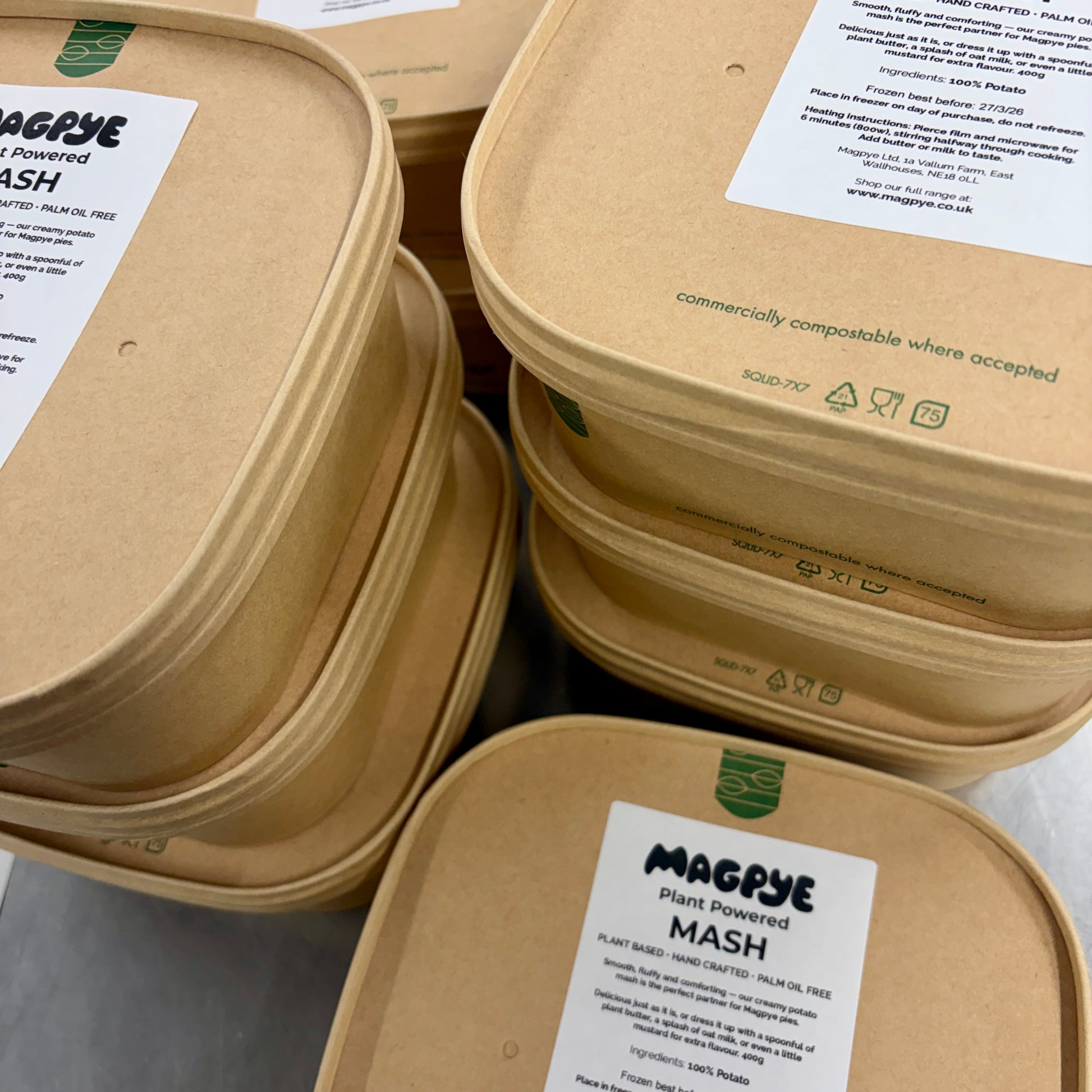 Creamy, smooth, and ready in 6 minutes from frozen, Magpye Mash is the perfect partner for your pies or a proper side dish on its own. Stir in a knob of vegan butter, a splash of oat milk, or a hint of mustard -- it's yours to make your own.